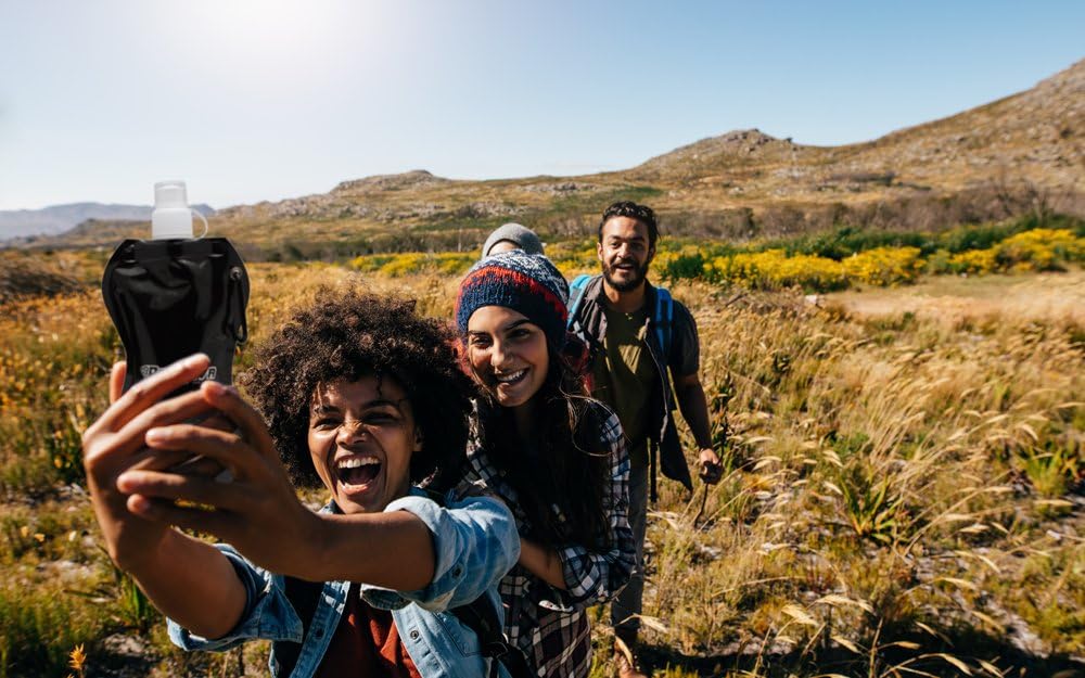 Collapsible Reusable Water Bottle with Carabiner Clip by Activiva - Light Weight Leak Proof Foldable Drinking Water Bottle - Non-Toxic BPA Free - 16.9 oz - 4 Pack