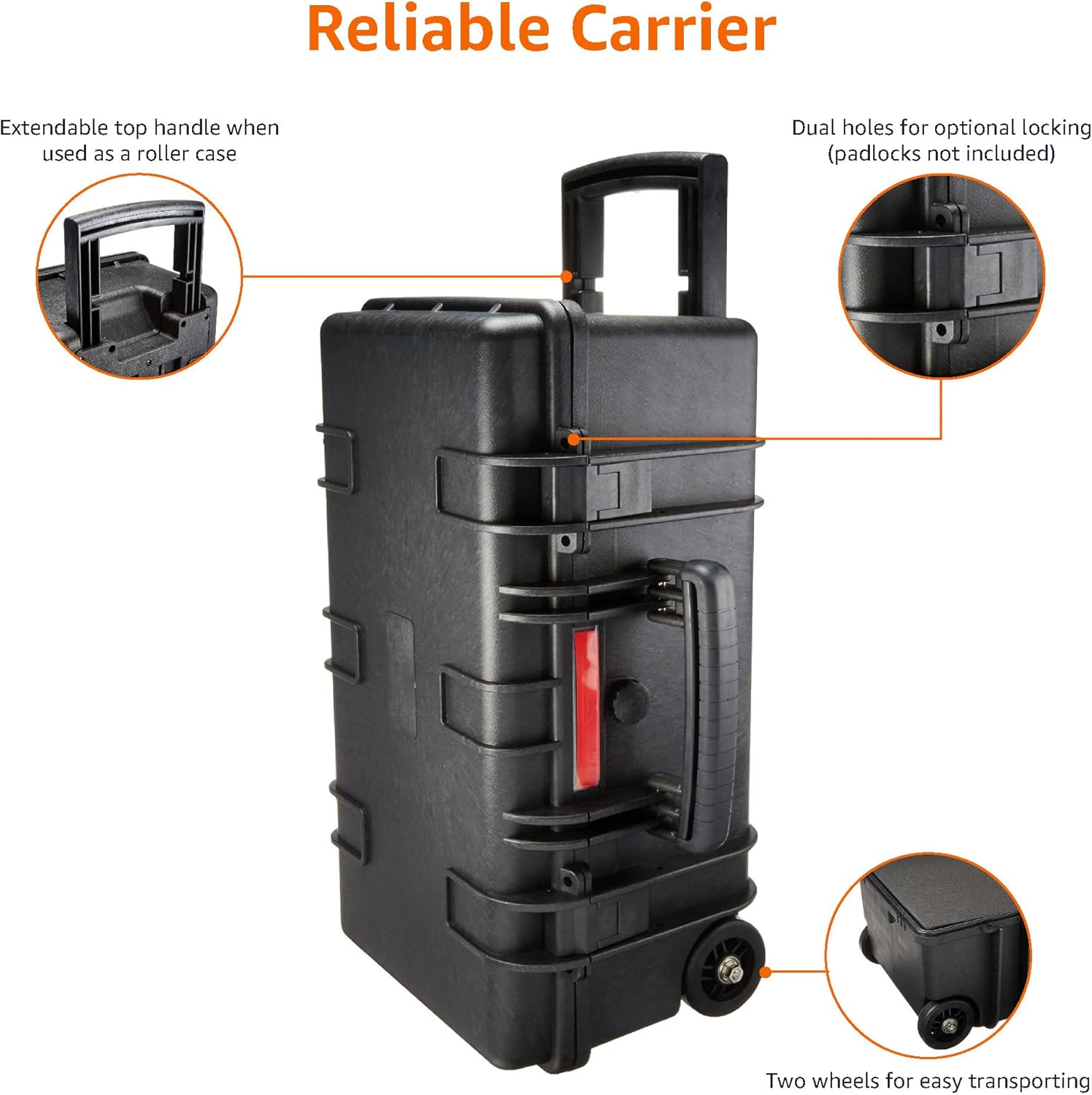 Amazon Basics Hard Camera Case with Wheels, Large, Black, Solid, 22"L x 14"W x 9.8"H