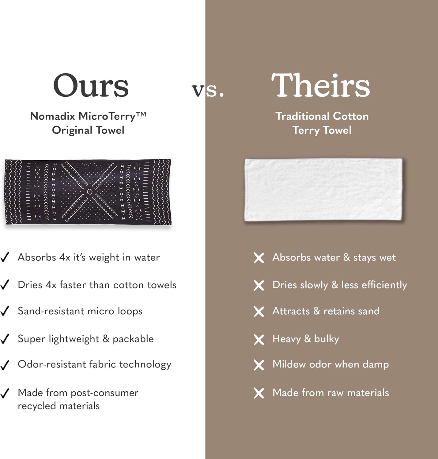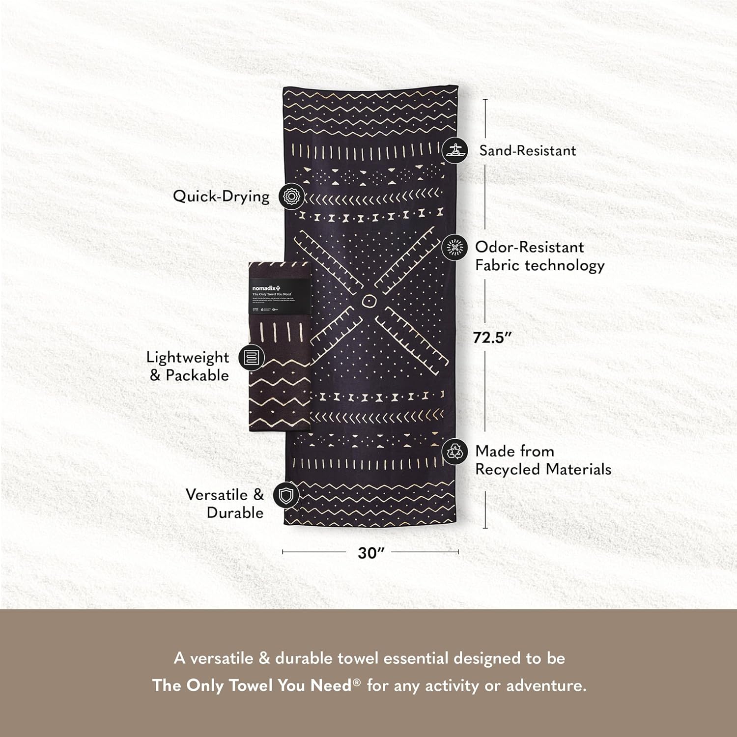 Nomadix Original Towel - Perfect for Beach, Pool, Travel, Camping, Yoga - Made with Recycled Materials - Super Absorbent - Sand Resistant - Mud Cloth - 72.5" x 30"