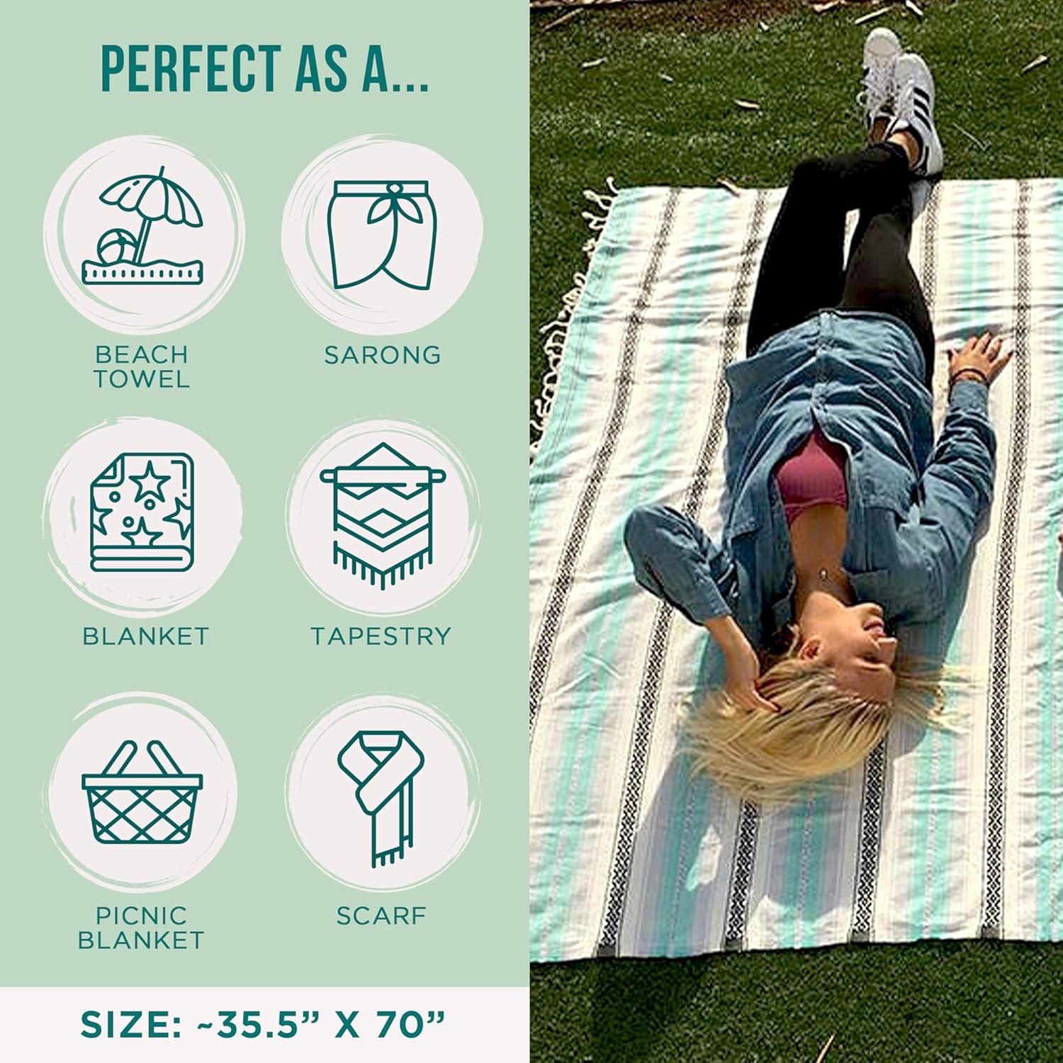 - 100% Organic Turkish Cotton: This towel is made with luxurious Turkish organic cotton with a single jacquard weave for a super soft, ultra absorbent, and sand resistant beach towel you can take anywhere. Completed with twisted tassels for added style.