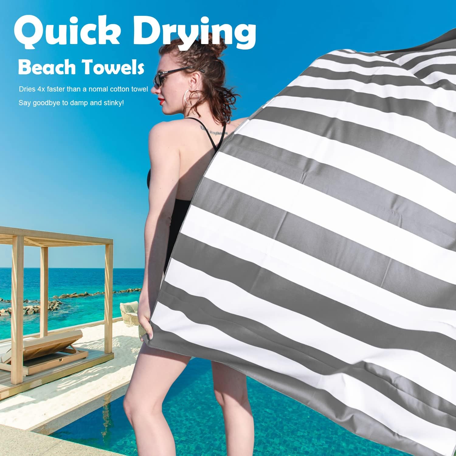 - 【Perfect for Every Beach Trip】 Designed for ultimate comfort and style, our oversized beach towels feature classic stripes and are perfect for any beach or poolside adventure. Stay dry and stylish on your next beach vacation with our sand-free, quick-drying towel.