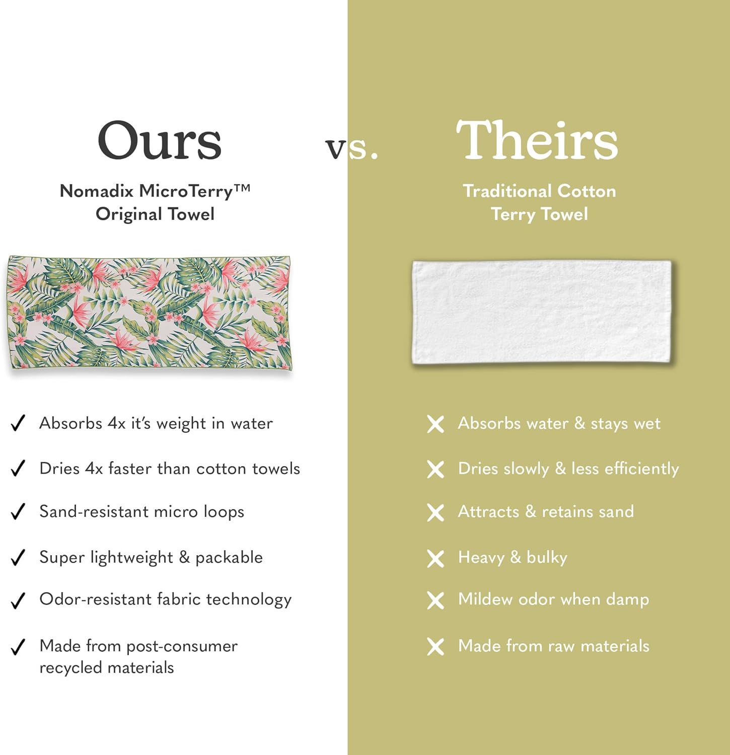 - Super Absorbent MicroTerry Fabric: Our MicroTerry Fiber is made with small loops, which means that it is super absorbent, absorbing 4x more than regular cotton towels.