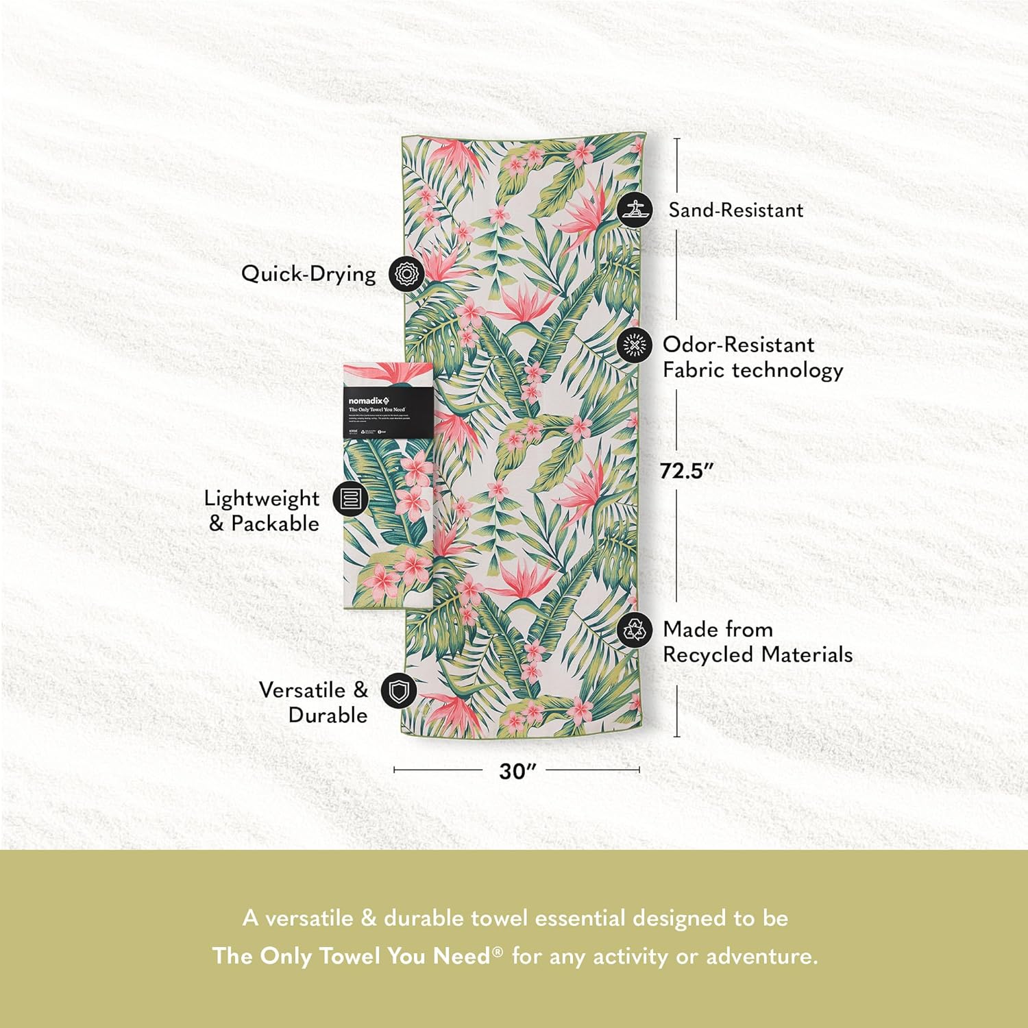 Nomadix Original Towel - Perfect for Beach, Pool, Travel, Camping, Yoga - Made with Recycled Materials - Super Absorbent - Sand Resistant -Palms Pink - 72.5" x 30"