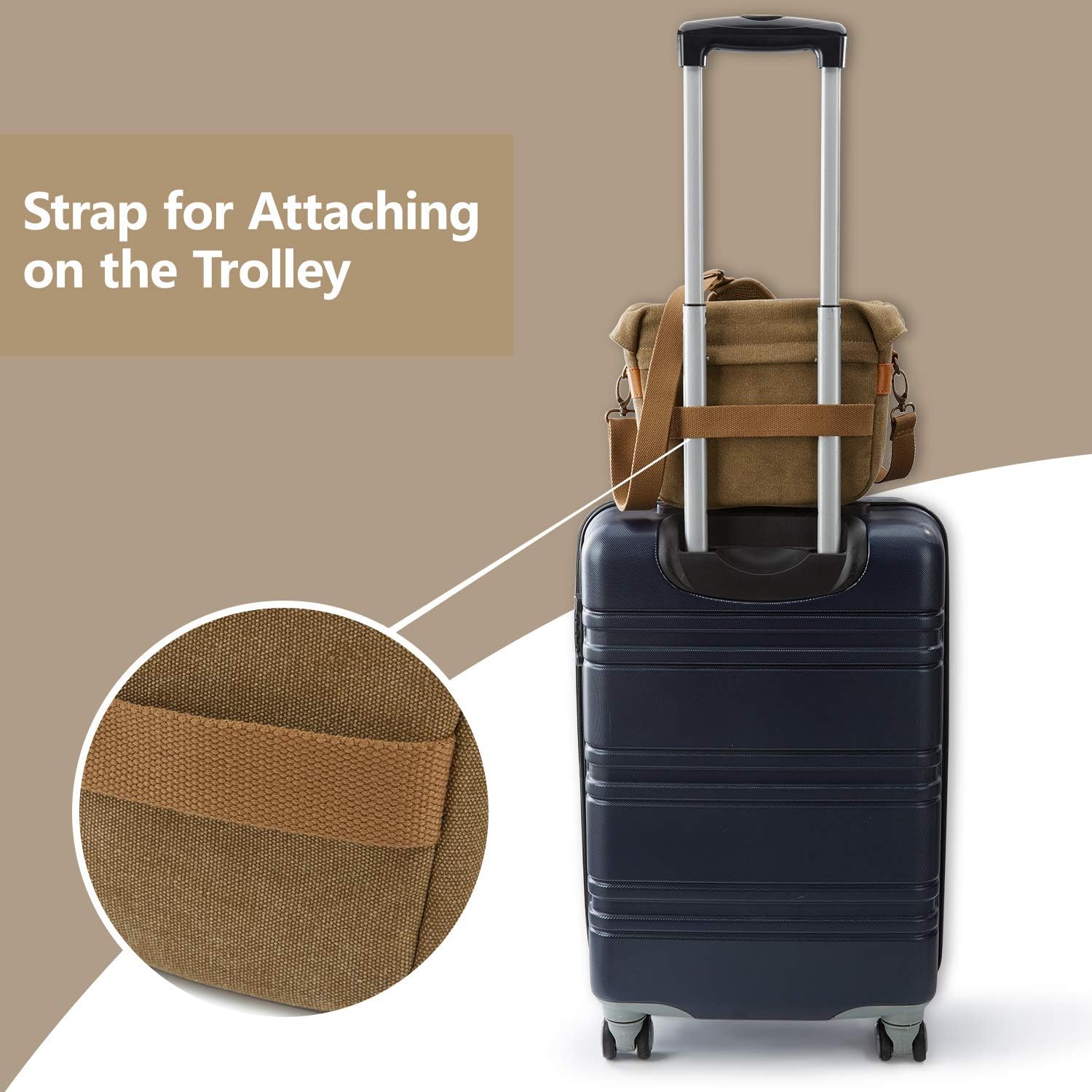 BAGSMART Camera Bag, SLR DSLR Canvas Crossbody Camera Case, Compact Camera Shoulder Bag with Rain Cover for Women and Men, Khaki