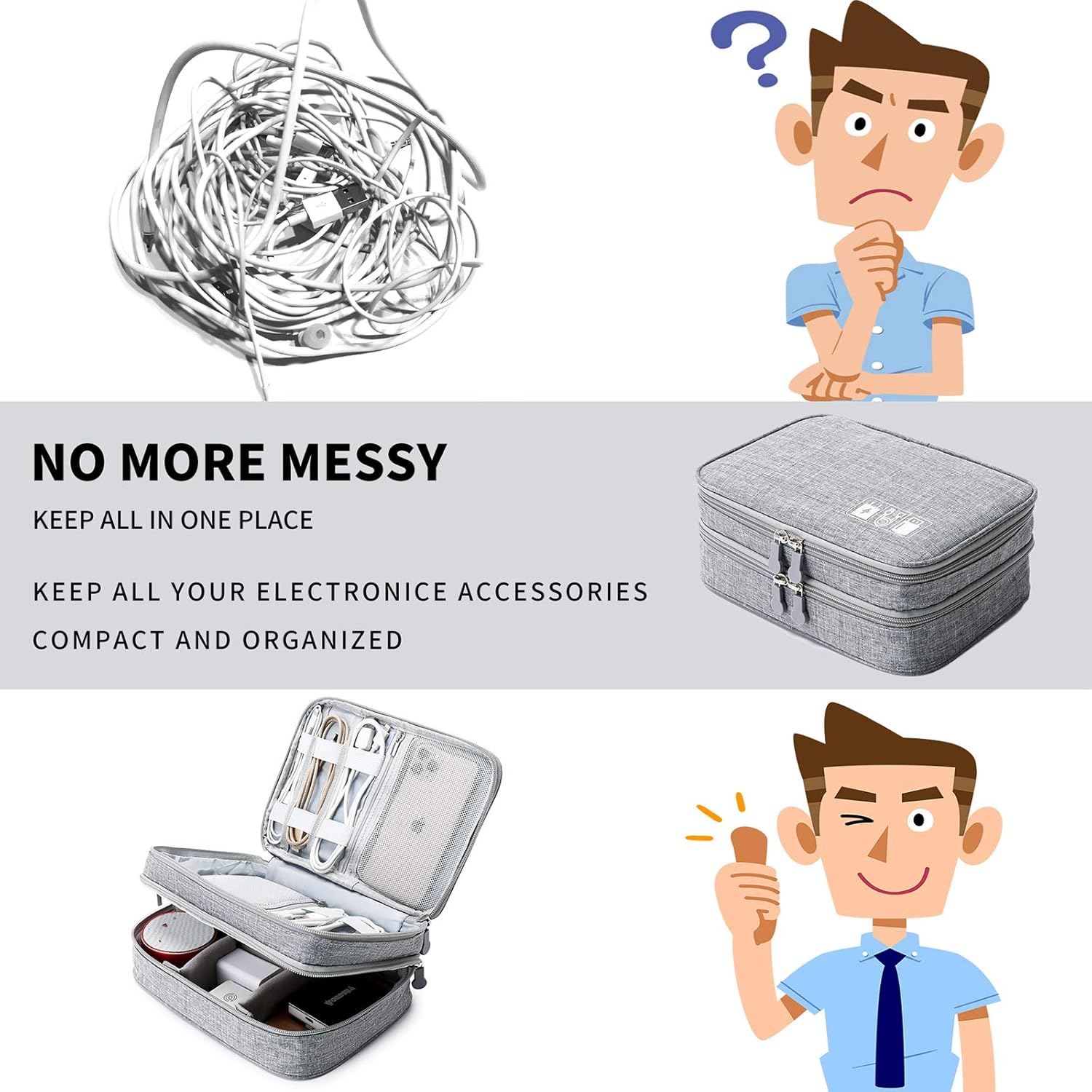 - 【TRAVEL EASIER】- Designed with a sturdy handle for carrying everything you need easily. Smooth zippers make it easier to open and close the bag to get your charger, cable or any other electronic accessories in a short time. If you are tired of rummaging around the house for your little gadgets, this tech organizer can do you a favor.