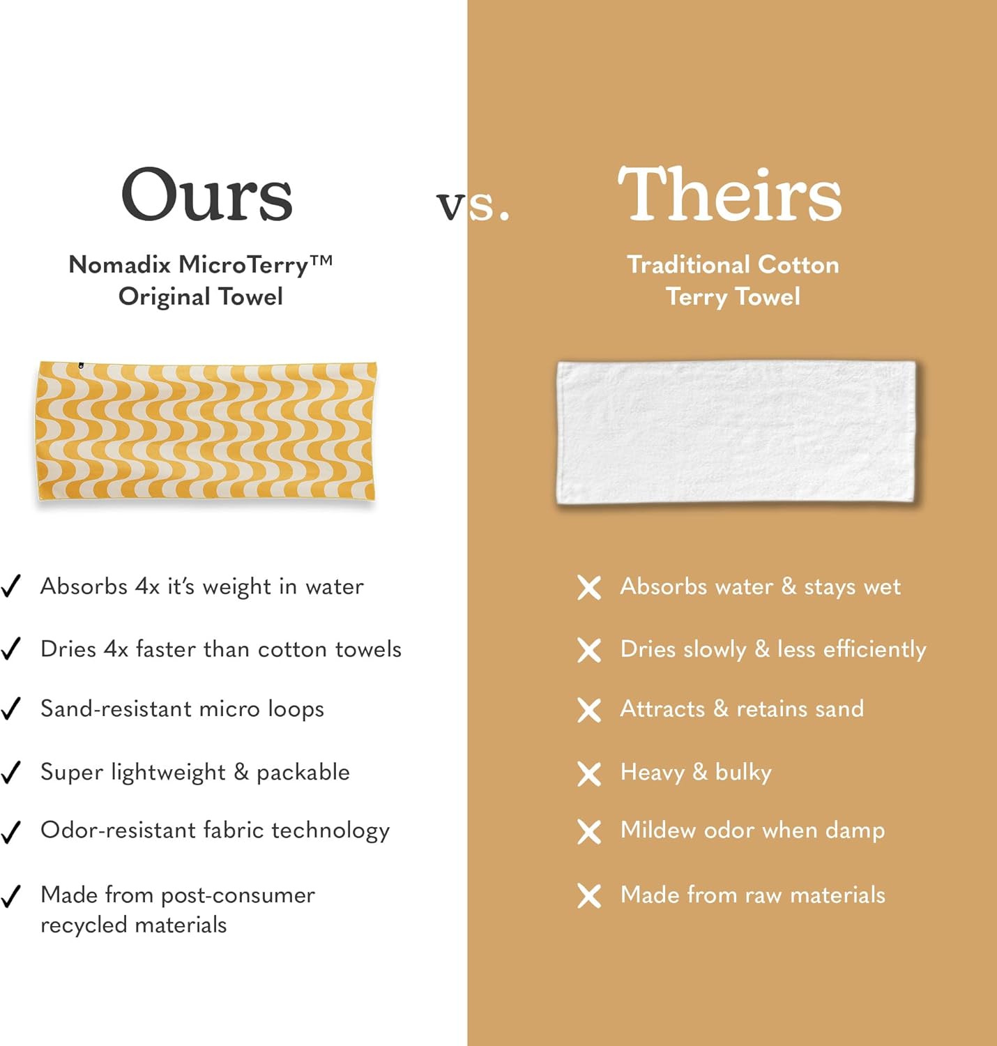 - Super Absorbent MicroTerry Fabric: Our MicroTerry Fiber is made with small loops, which means that it is super absorbent, absorbing 4x more than regular cotton towels.