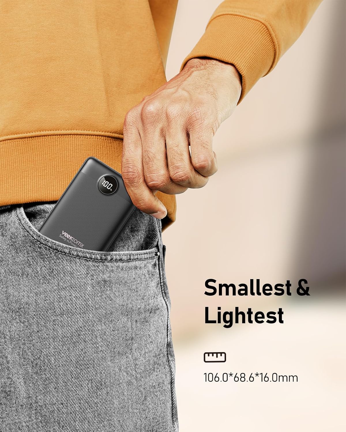 - [ Compact & Lightweight External Power Bank ] VEEKTOMX mini power bank packs 10,000 mAh capacity into a remarkably compact and lightweight design. Measuring just 4.2 x 2.7 x 0.6 inches and only 5.8 oz. Easily slips into your pocket, purse, wallet, or backpack, making it the perfect travel must-have for staying powered up wherever you go. Whether you're commuting, flying, having parties, on a cruise, or camping, this small yet mighty charger keeps your devices running without weighing you down.