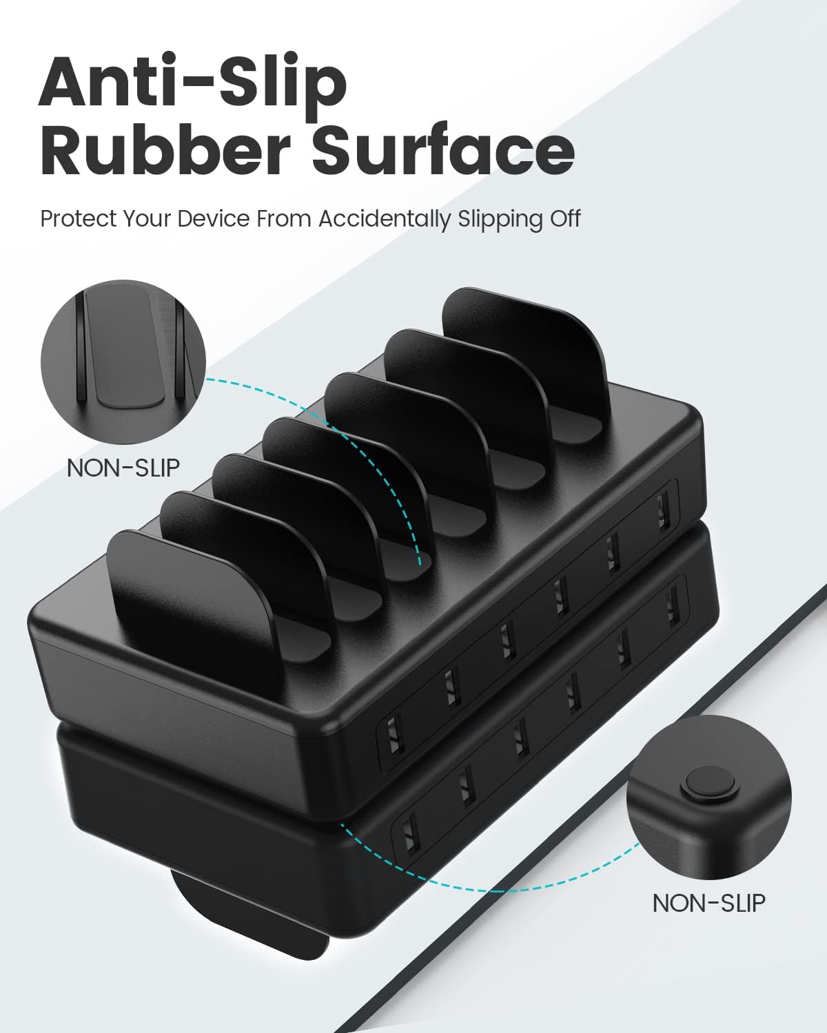 - ăLess mess, More organizedăThe multiple charging station has 6 smart USB ports that put all your devices in one place, simultaneously charge your smartphone, power bank, tablet and other devices, and keep them organized neatly and save more space. Perfect for Big Family