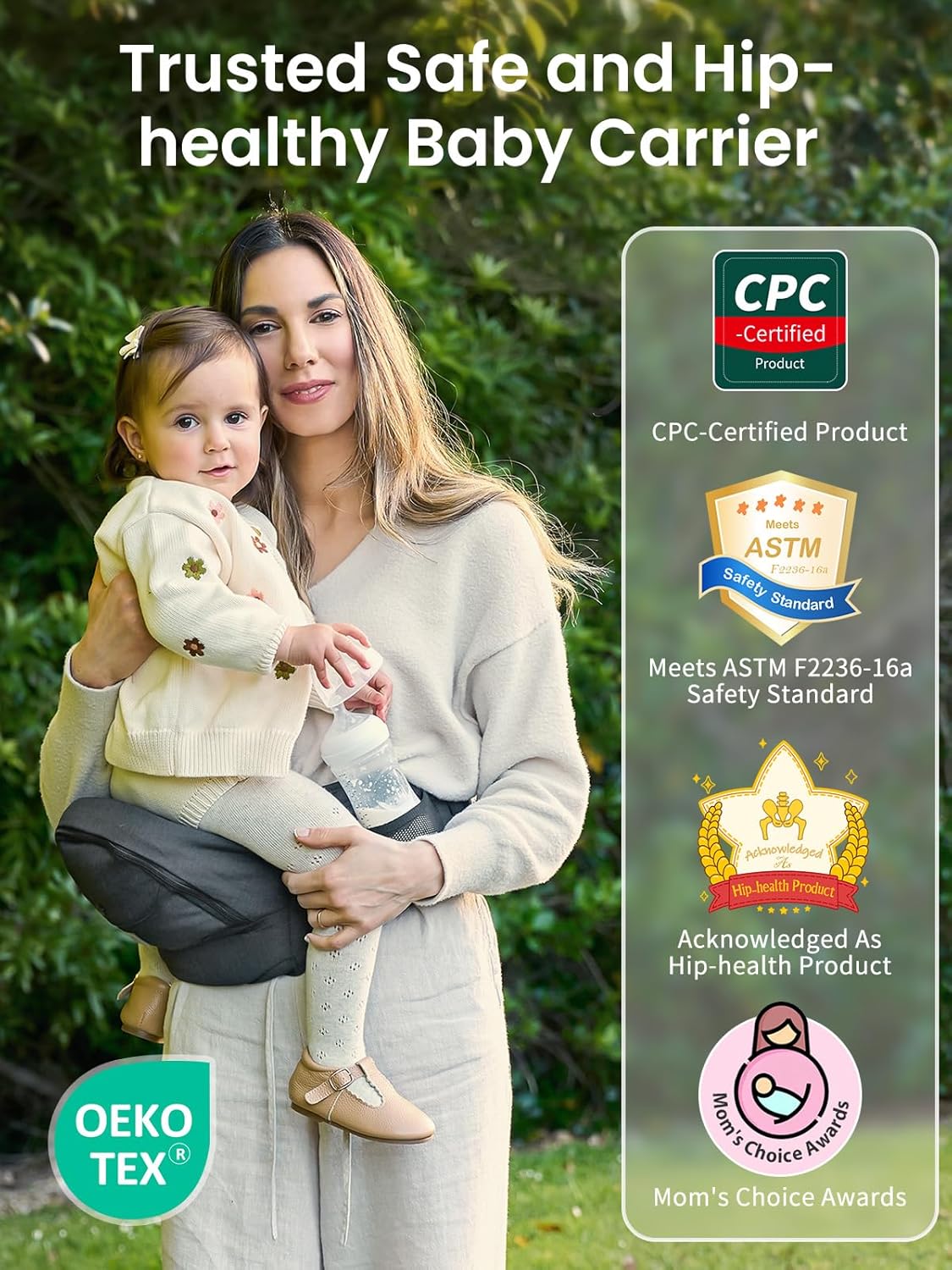 - 【We’ve Got Your Back! And Your Hip】As baby gets heavier, holding baby in your arms can be tiring and straining on your arms and back. Sitting baby on the non-slip padded hip seat, instead on your hip, prevents you from curving your back while keeping baby close, supported, and happy. Additionally, the wide waistband provides comfort for parent’s waist and back. Padded Abdominal Pad Design is a plus to release pressure for long walking.