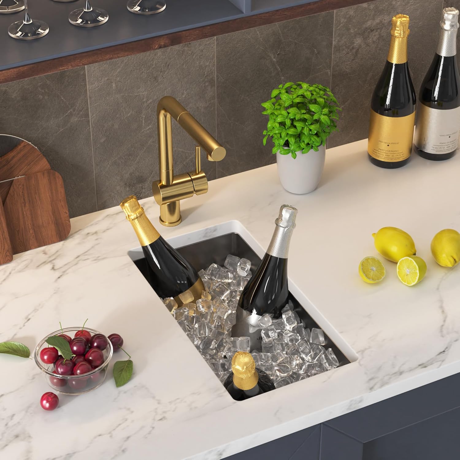 - [Anti-noise & Anti-condensation]: Designed with anti-condensation undercoating and anti-noise thick rubber padding on the sink bottom minimizes the sound of the drum and reduce the vibration. The protective layer can keeping the cabinet dry and clean.