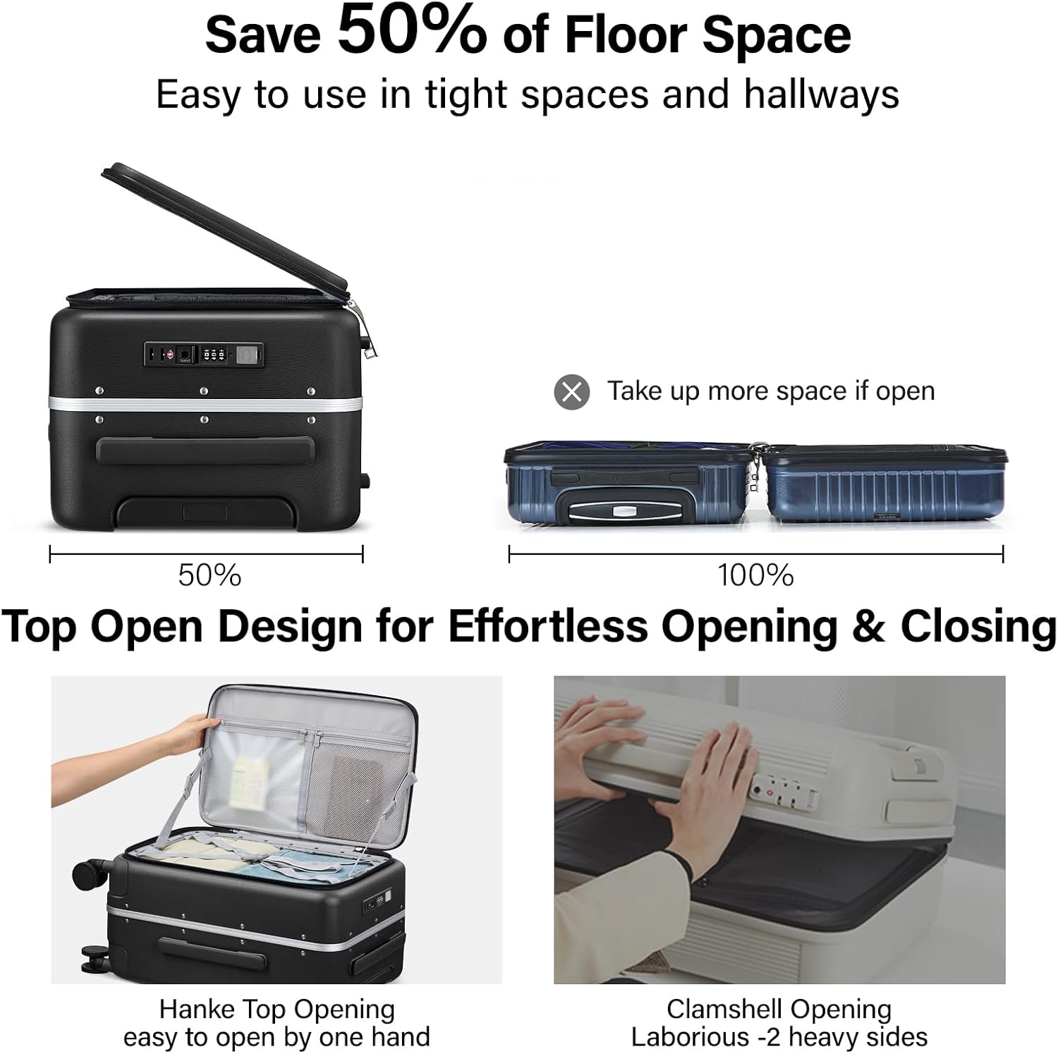 - 【Save Space & Effort】The top opening hard shell luggage is a real space-saver in a tight space compared to a suit case that zips open in the middle and has to spread out.And the top opening luggage can be opened easily with one hand, is user friendly for elder, children and someone with less effort strength.