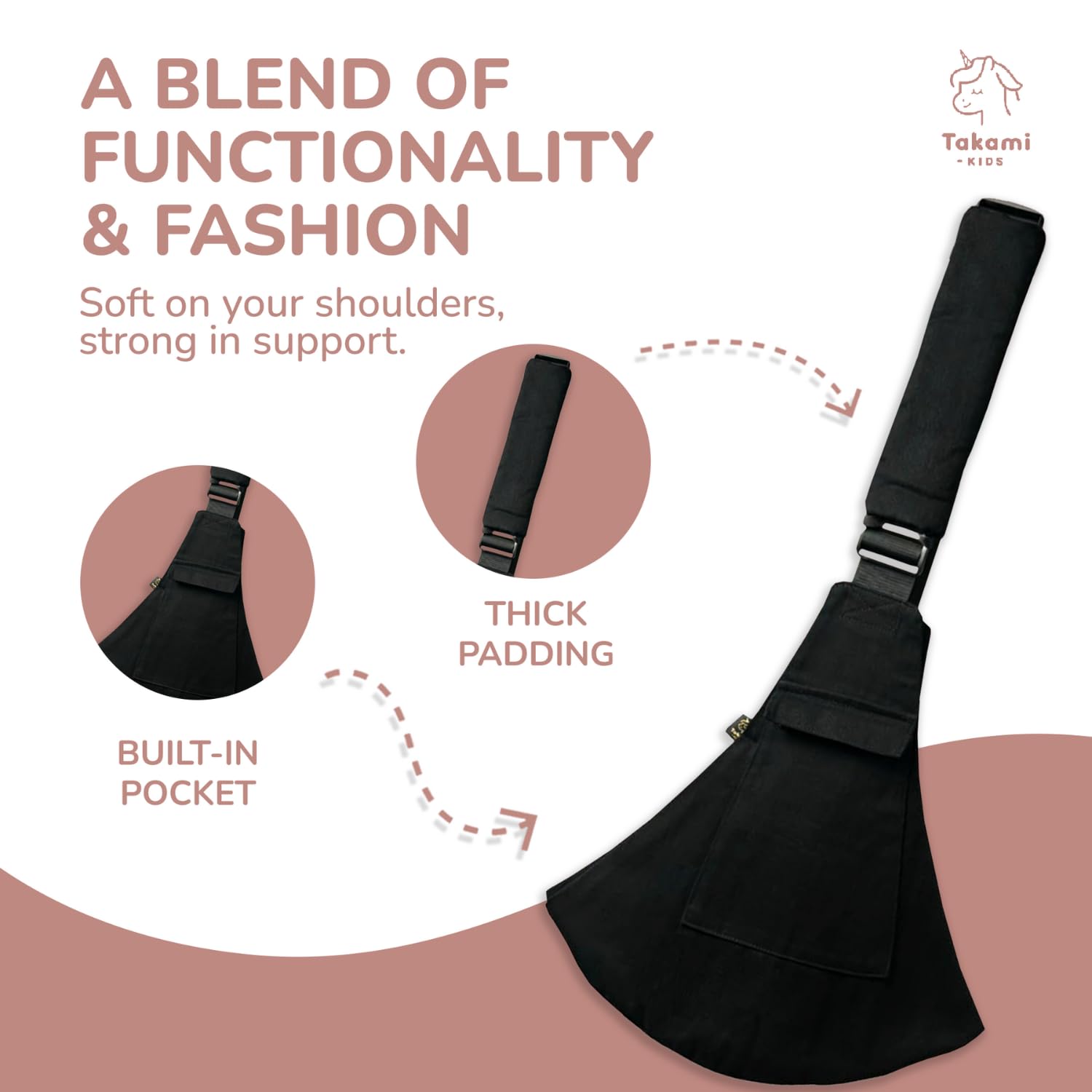 Ergonomic Lightweight Adjustable Toddler Sling Baby Carrier with Zipper Pockets Shoulder Padding Anti Slip Support for Travel Loving Dads and First Time Moms from 12 Months to 3 Years