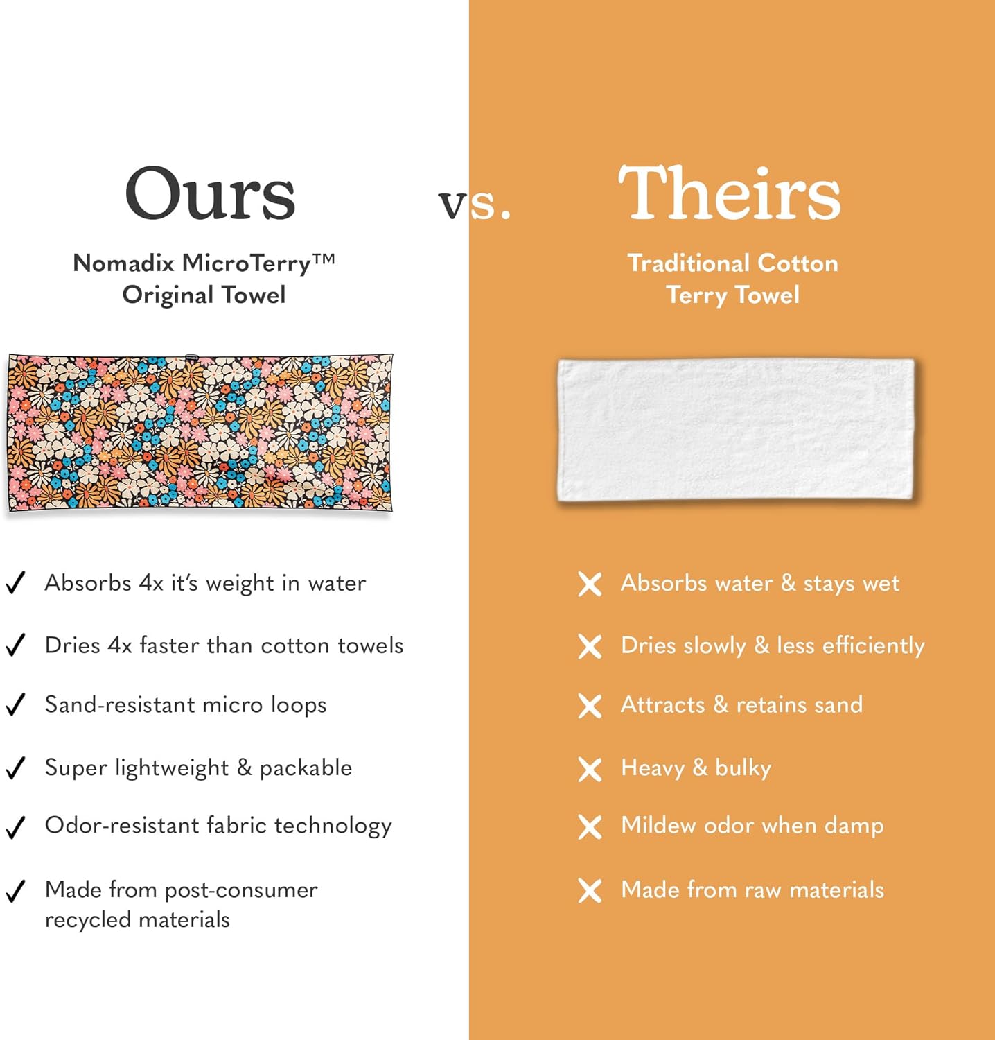 Nomadix Original Towel - Perfect for Beach, Pool, Travel, Camping, Yoga - Made with Recycled Materials - Super Absorbent - Sand Resistant - Hula Multi - 72.5x30