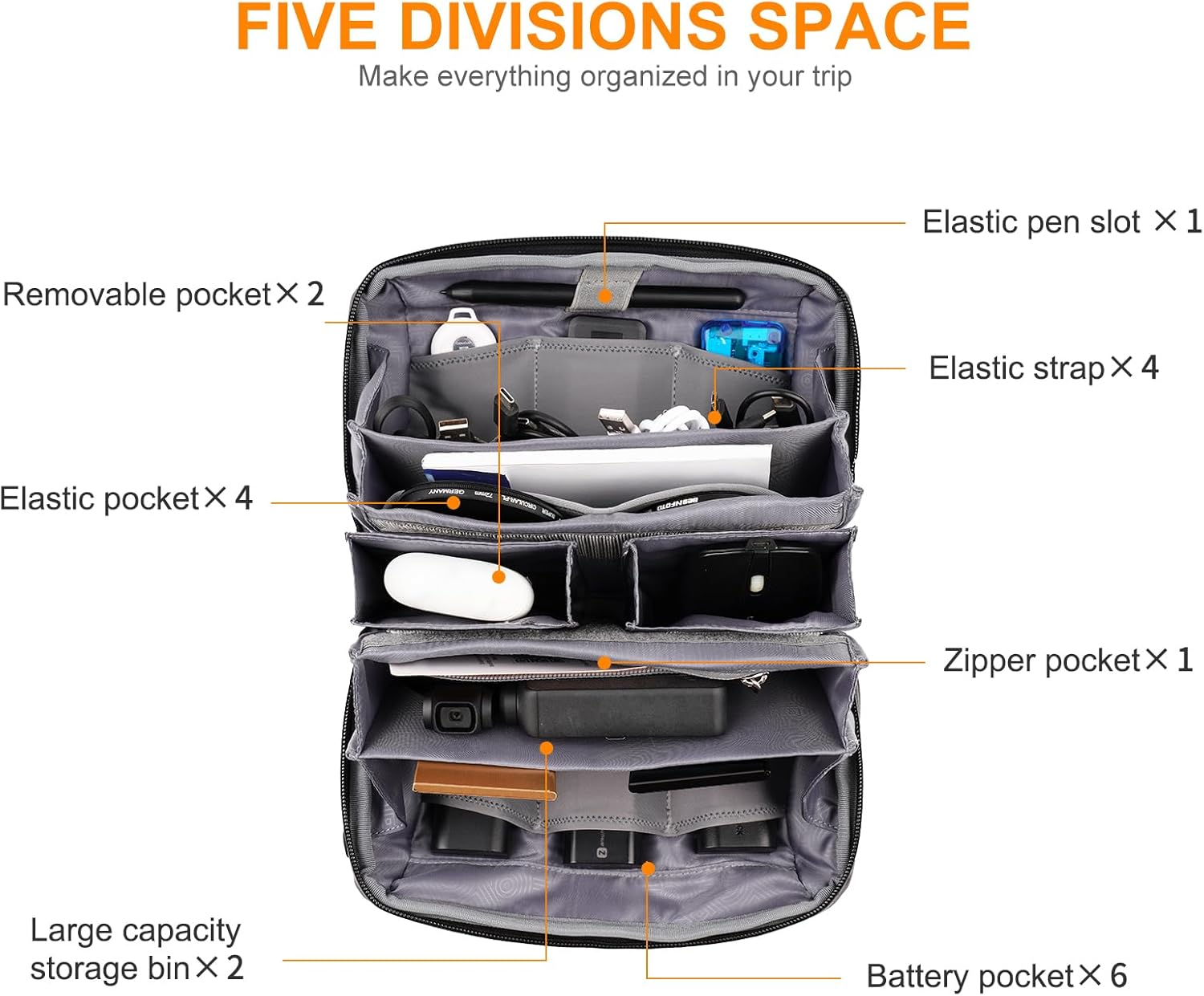 - Travel Friendly - Compact small size accessries bag easily put in your backpack/daypack. Clamshell style opening and Origami-style internal pocket layouts easy access to all your electronic accessory without spilling things out. For your everyday journeys and airplane flight.