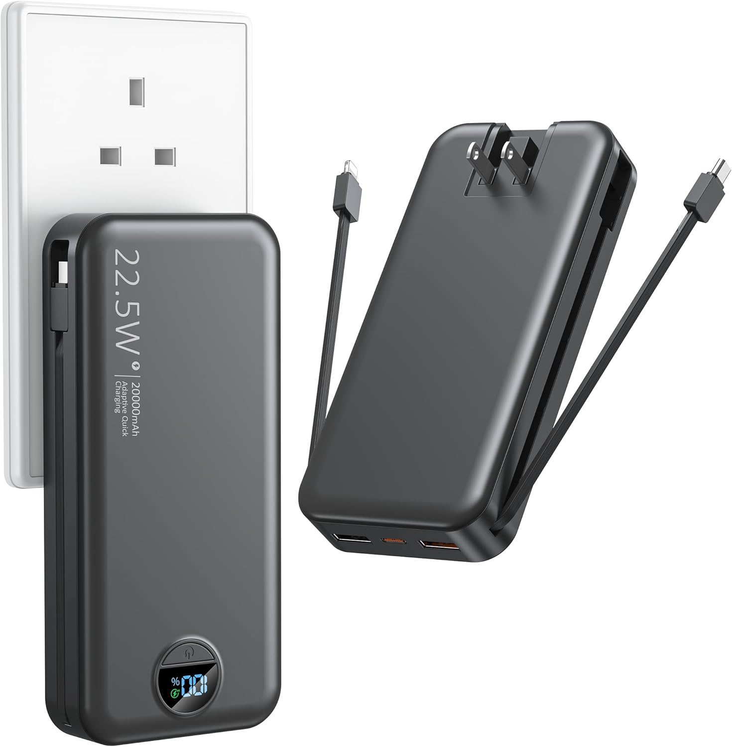- Special Feature : power bank built in cable, portable charger wall plug, USB C 20W, USB-A 22.5W fast charge, 20000mAh large capacity, digital display, camping accessories, traveling essentials, airplane travel, keep from over charging, short circuit, over voltage, over heat, over current, over discharge, pocket size and lightweight, scratch resistant, auto shut-off power bank built in cable, portable charger wall plug, USB C 20W, USB-A 22.5W fast charge, 20000mAh large capacity, digital display, camping accessories, traveling essentials, airp… See more