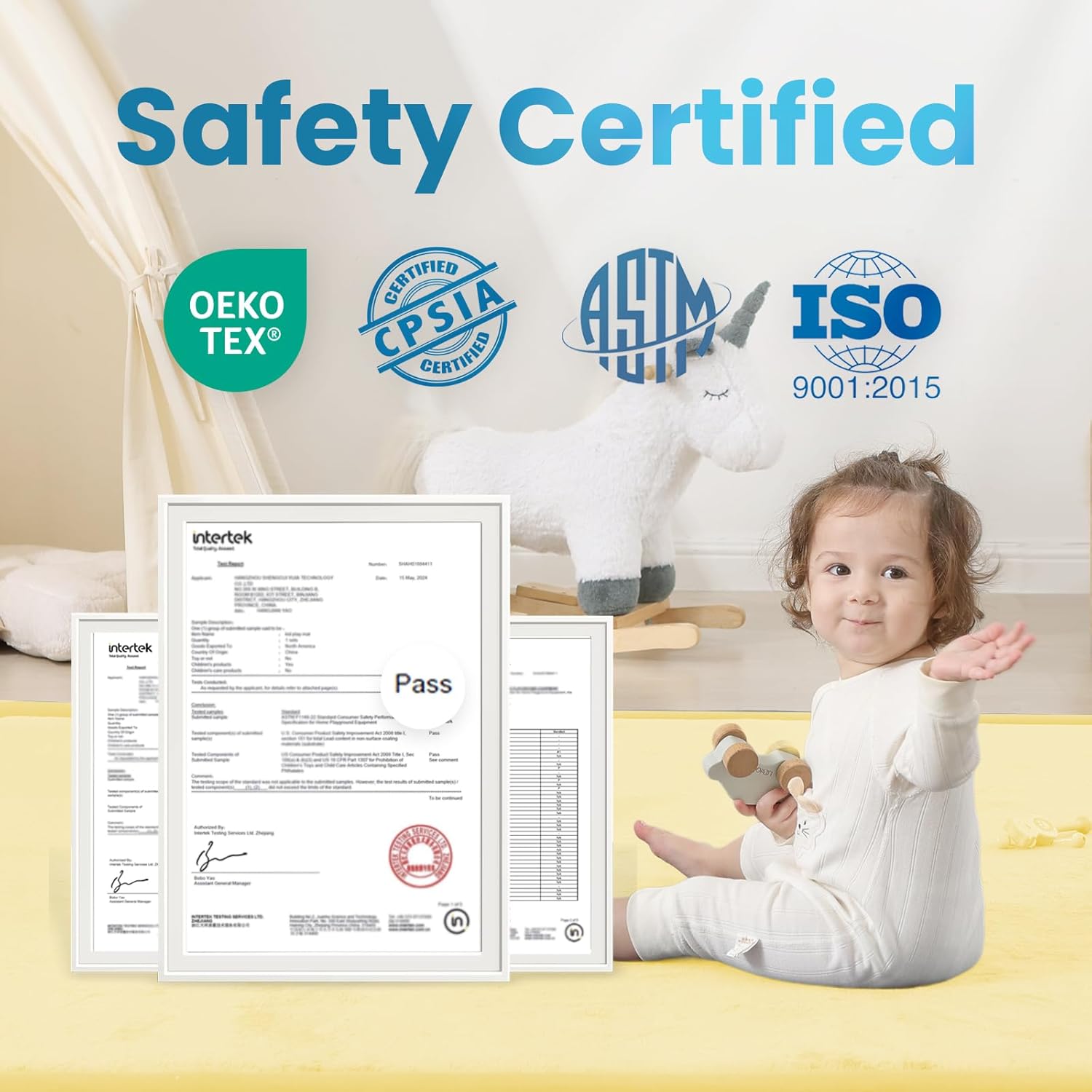 - 【Premium Safety Certified】:Our baby mat meets the highest safety standards, featuring OEKO-TEX certified fabric and CERPITUR-US certified elasti-foam,ensuring no harmful chemicals. It also passes ASTM & CPSIA tests, making it safe for infants & toddlers.