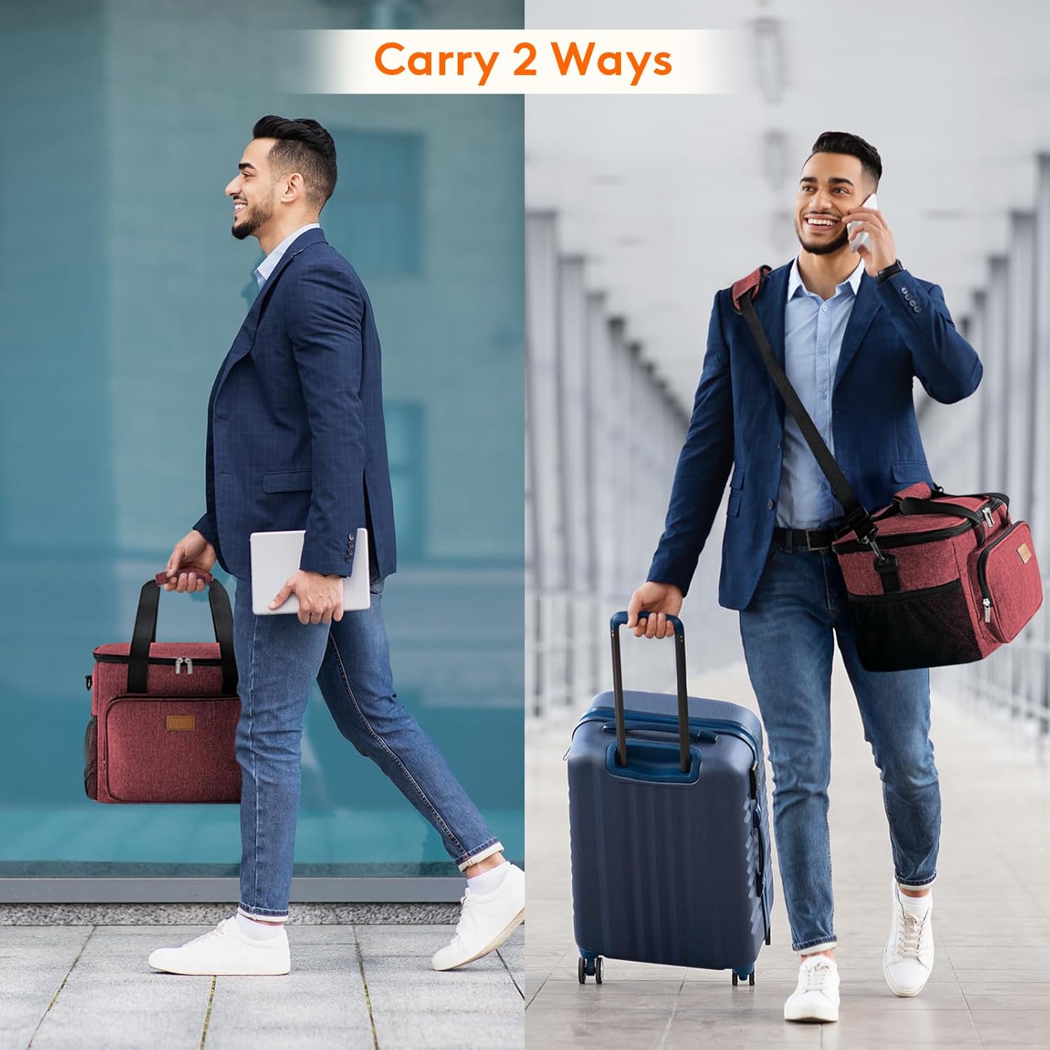 - Convenient & Portable: The lid of this cooler lunch bag can be opened up widely with strong two-way zippers, which means you can put your lunch container into the bag and take out of the bag vertically. Prevent liquids from leaking out of the container and soiling inside the bag. Tough handles and shoulder girdle allows you to carry it easily. Moreover, the front and side extra pocket can hold small items like keys and earbuds.