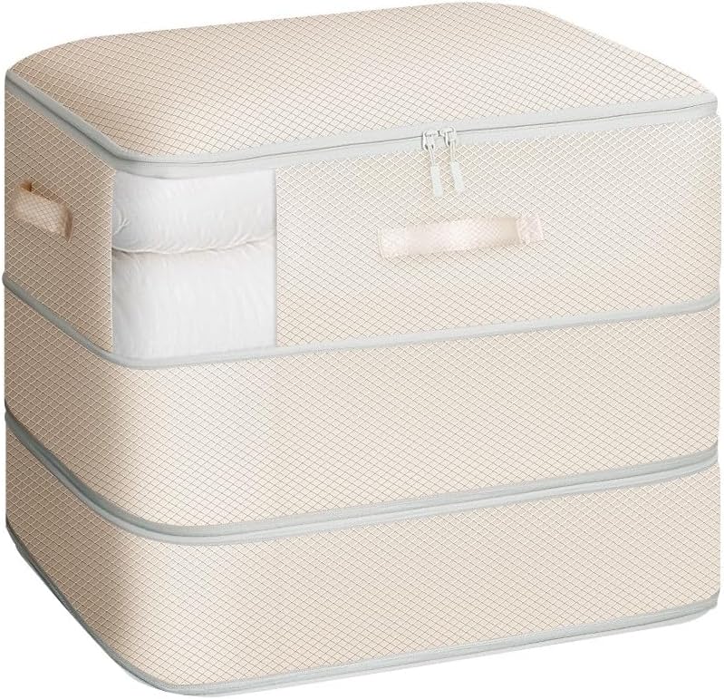 - [Reinforced Handles & Double Zippers]: These blanket storage bags are designed for convenience and durability, featuring dual handles (top and side) for easy carrying in any position. The heavy-duty double zippers ensure a secure closure, preventing tears or snags even when fully packed