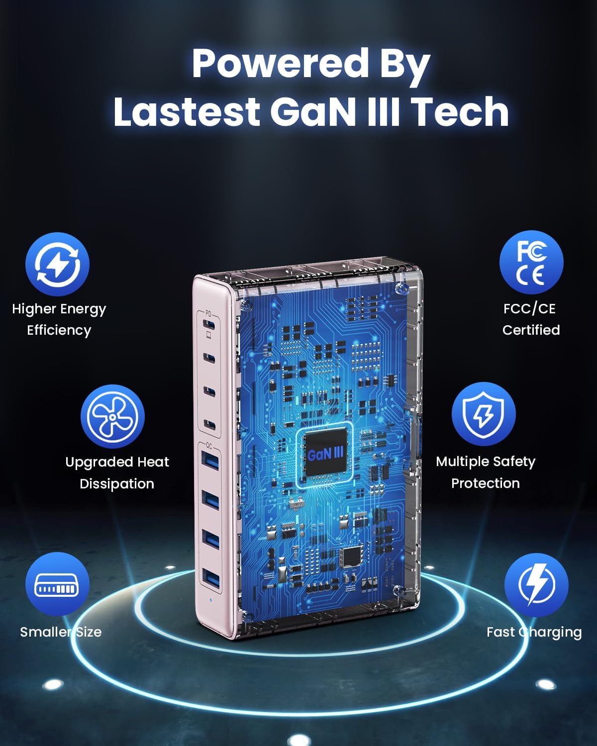 - 【GAN III Fast Charging Station】The USB C charger adapted GaN3 generation chip technology, built-in multi-protection system and premium microchips. With higher energy efficiency, higher resistance to radiation and upgraded heat dissipation, Gallium Nitride (GaN) makes our chargers smaller and safer without sacrificing a drop of power.