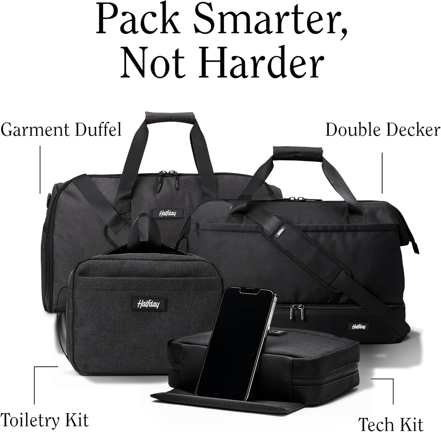 Halfday Sidekick Tech Organizer Kit | Flip-Out Kickstand for Phone/Tablet, Zip-Flat Pouch with Power Mesh & Elastic for Cable & Charger (Splash-Resistant Travel Electronics Accessories Case), Shadow