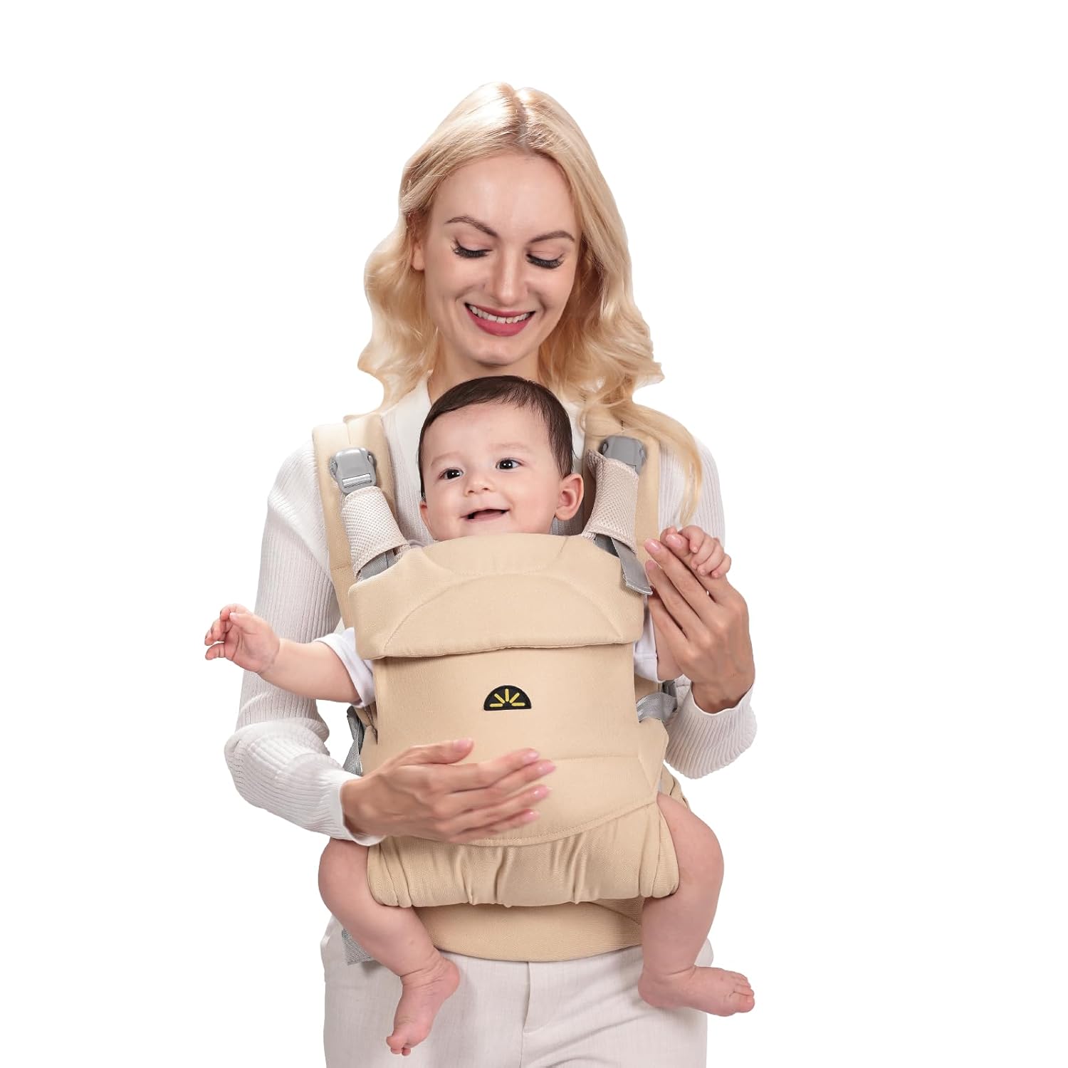 Baby Carrier for Newborns to Toddlers, Adjustable, Ultra-Soft and Weightless, Ergonomic Baby Carrier with Head Support, Baby Travel Gear, Baby Essentials (Beige),