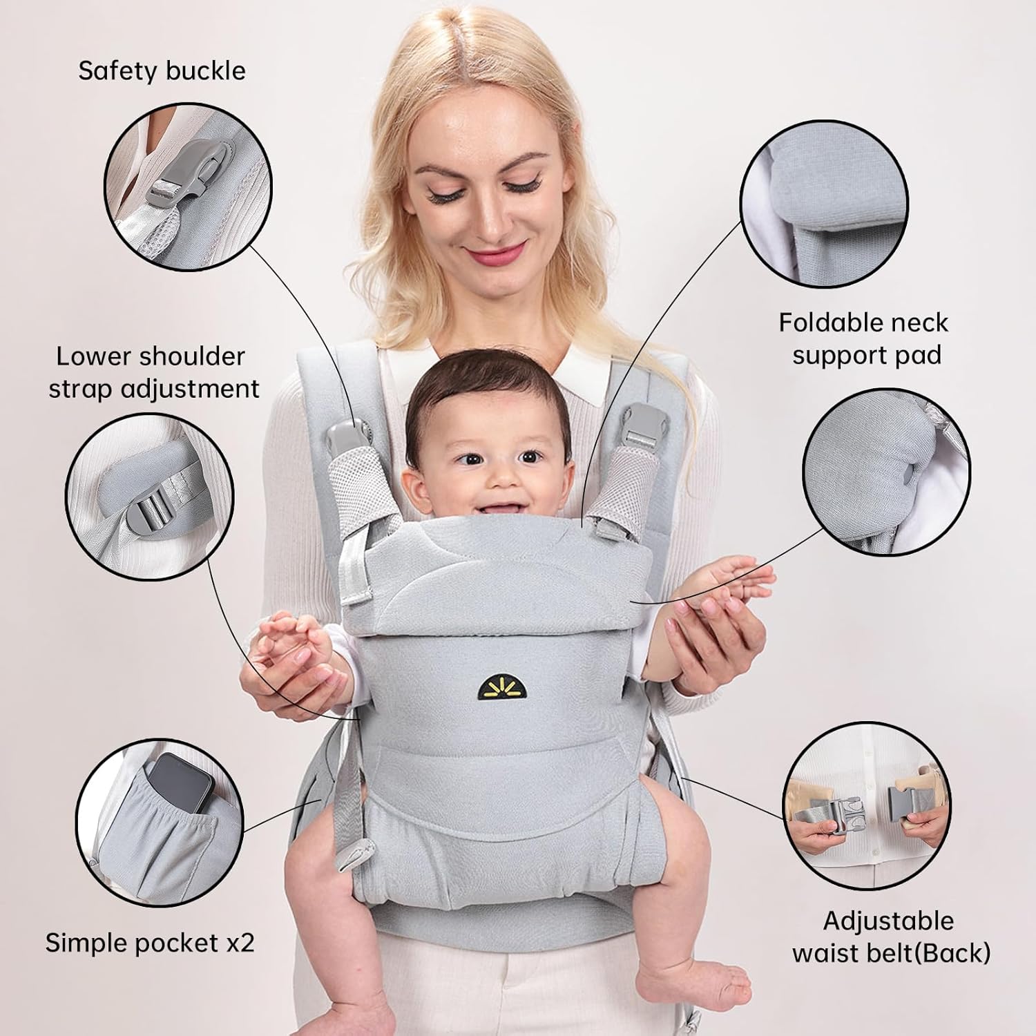 - MULTIPLE CARRYING POSITIONS: This baby carrier enables positions such as infant facing in, facing out, and on the back. Newborns crave closeness, and the facing-in position strengthens your bond with your baby. Perfect for families on the go, it also serves as essential Baby Travel Gear, combining comfort, versatility, and convenience for everyday use or trips.