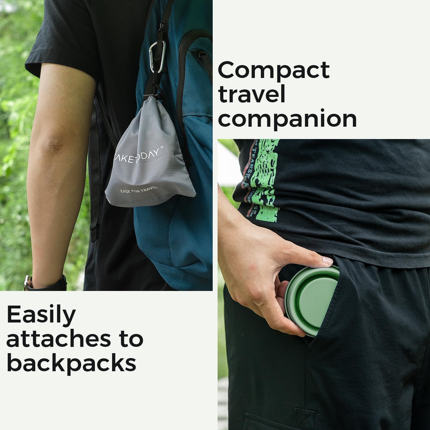 TakeToday 2PCS Collapsible Travel Cup - Silicone Foldable Water Cup, BPA-Free with Lid & Waterproof Bag - Drinking Cup Set for Camping, Outdoors & International Travel(8 Oz, Navy & Green)